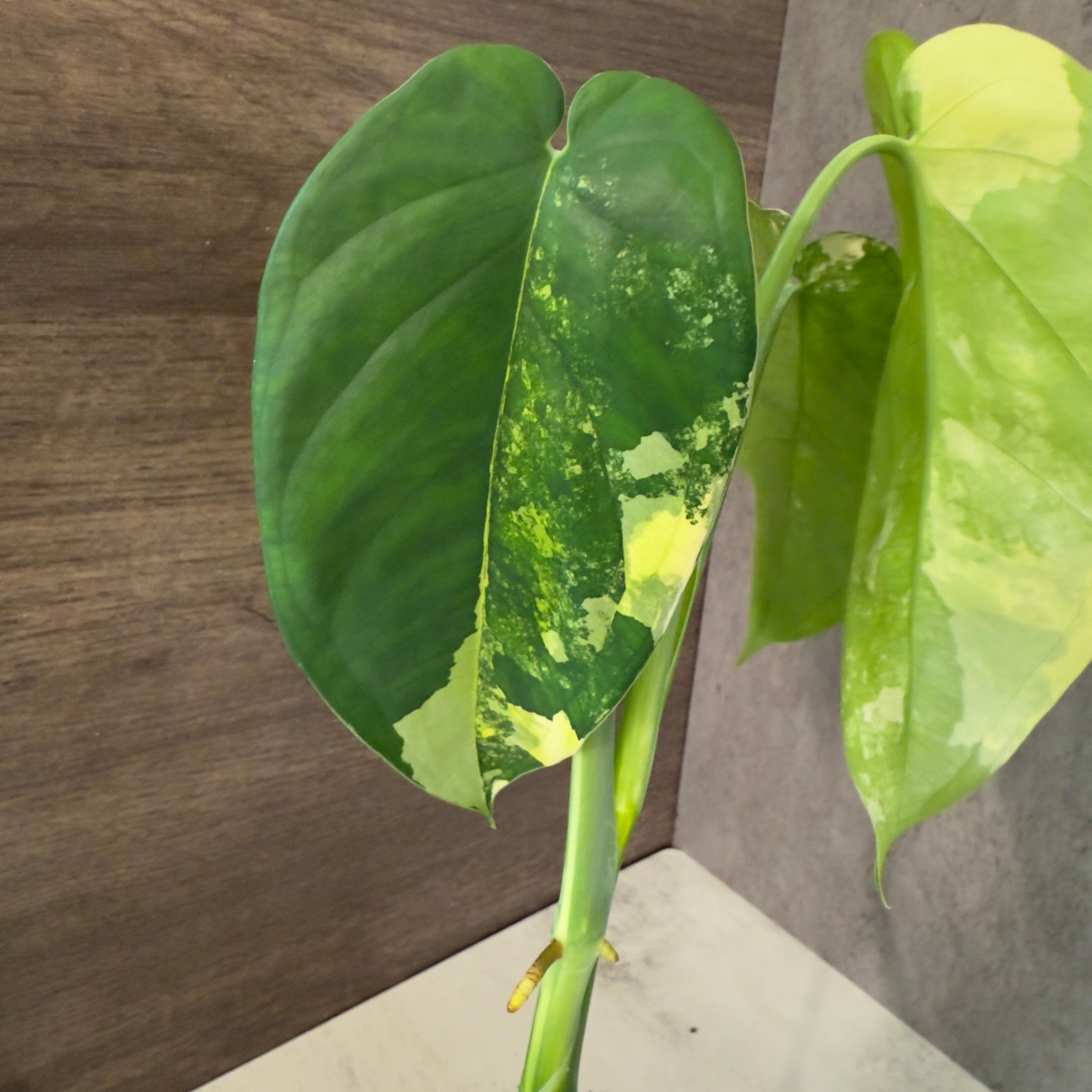 This variegation is the result of chimera tissue—cells lacking chlorophyll that rely on adjacent green tissue for photosynthate. Unlike some Syngoniums that lose pattern with maturity, chiapense holds its variegation reliably when given bright, indirect light. The plant’s terete (rounded) petioles and thick, coriaceous leaves are built to withstand both indoor environments and the shifting light of a forest understory.