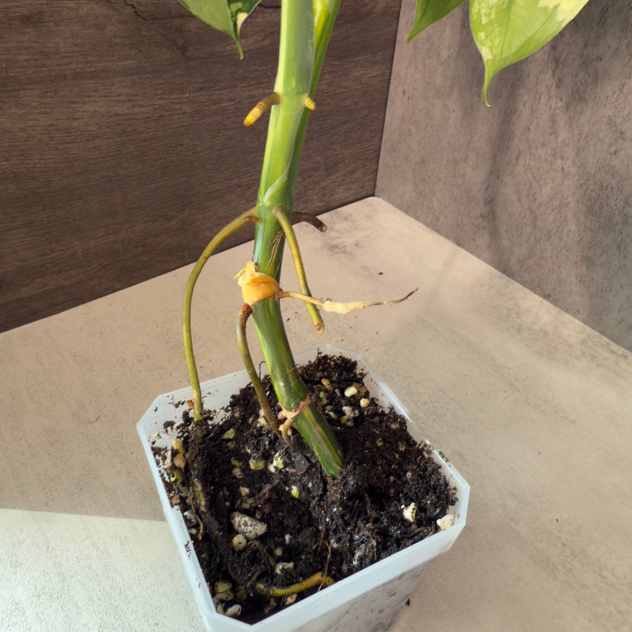 With age, it develops a stately, self-supporting posture, but will also happily climb with a moss pole or trellis. As a hemi-epiphyte, S. chiapense can shift between ground and climbing growth habits, producing aerial roots at nodes to secure itself and reach better light in the wild.
