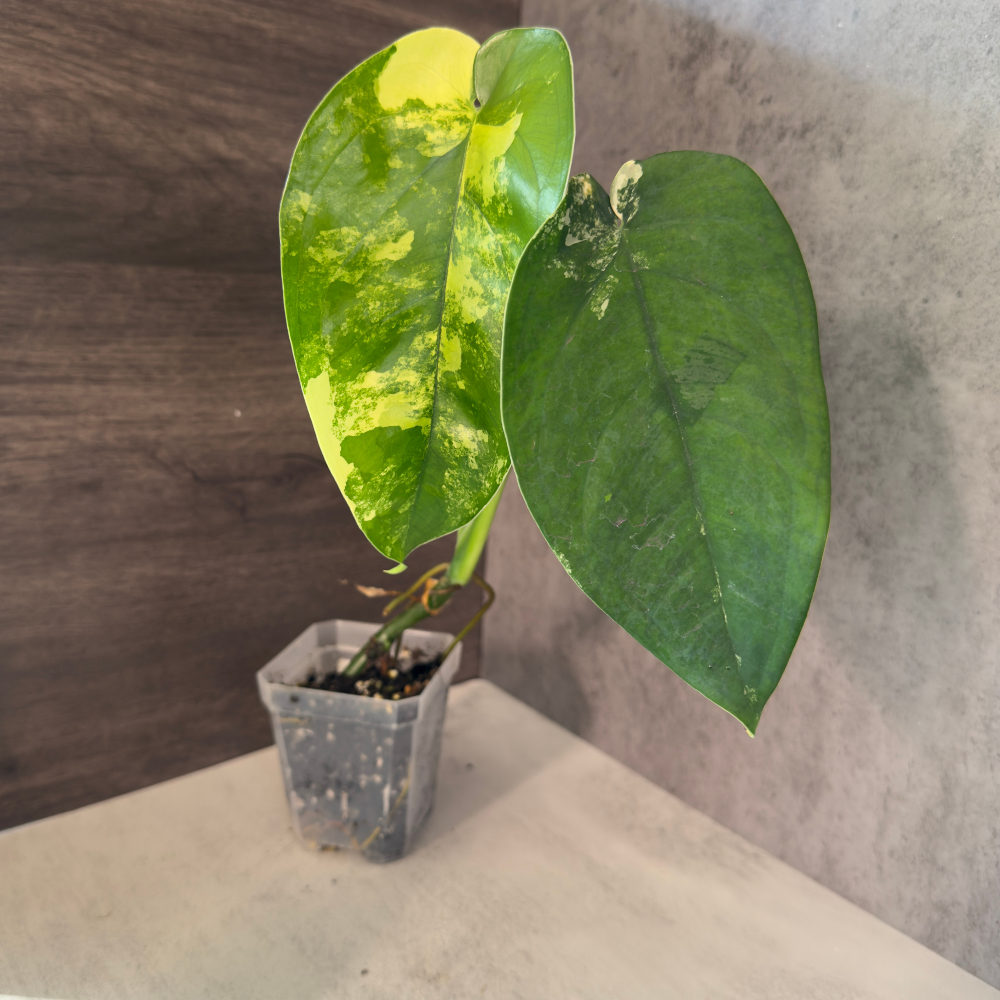 If Syngonium podophyllum is the extrovert of the genus, Syngonium chiapense is its more refined, architectural sibling—and the Variegated form takes that elegance and turns it into a showpiece. Native to the tropical forests of Chiapas, Mexico, this species is prized for its oversized, paddle-shaped leaves with a deep, velvety green base and creamy-white variegation that can splash, marble, or sector across the blade.