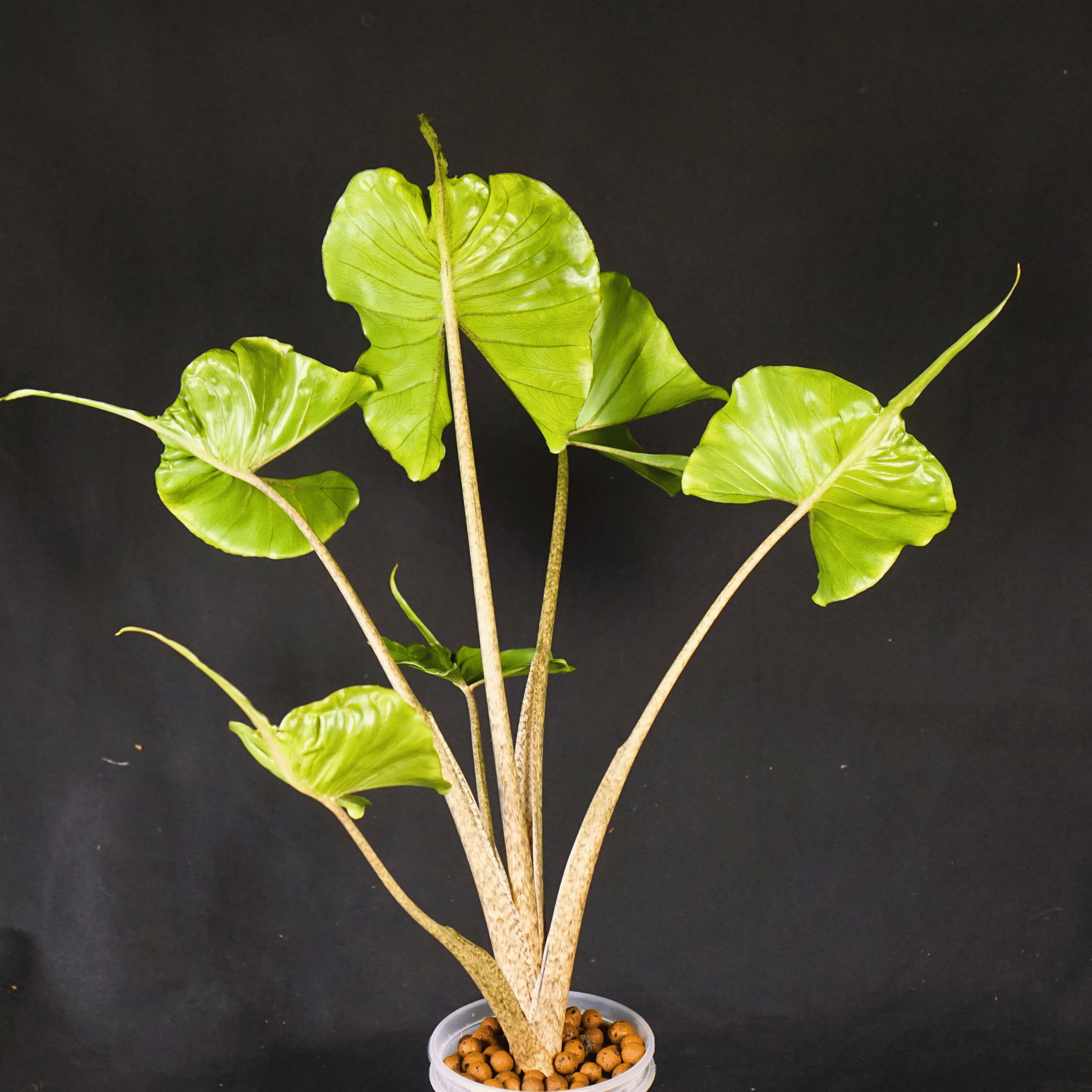 The species grows from a central corm and produces strong, vertical petioles. As the plant matures, it will naturally begin to offset—making it ideal for long-term growers looking to both display and divide.
