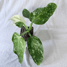 Philodendron ‘Jose Buono’ is a large-leaf philodendron prized for its bold cream-to-white chimeric variegation and broad, paddle-shaped foliage. It’s considered a collector plant due to its size potential and high-contrast patterning.