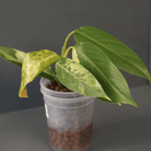 A rooted plant from the same hybrid line. All have visible variegation and strong growth. Each will vary in pattern and leaf shape due to natural chimeric and hybrid variation.