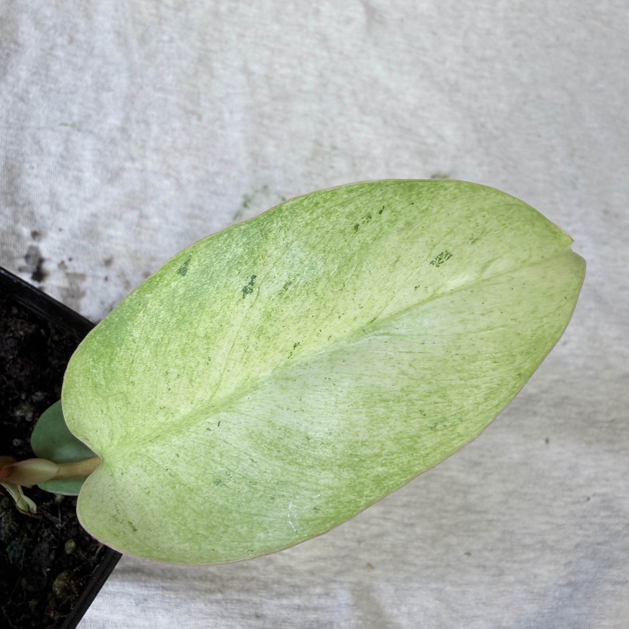 New leaves often emerge lighter—sometimes nearly translucent—before hardening off into a gentle mix of green and cream. The effect is calm, understated, and very different from bold marbled philodendrons. This is a plant for collectors who appreciate nuance.