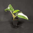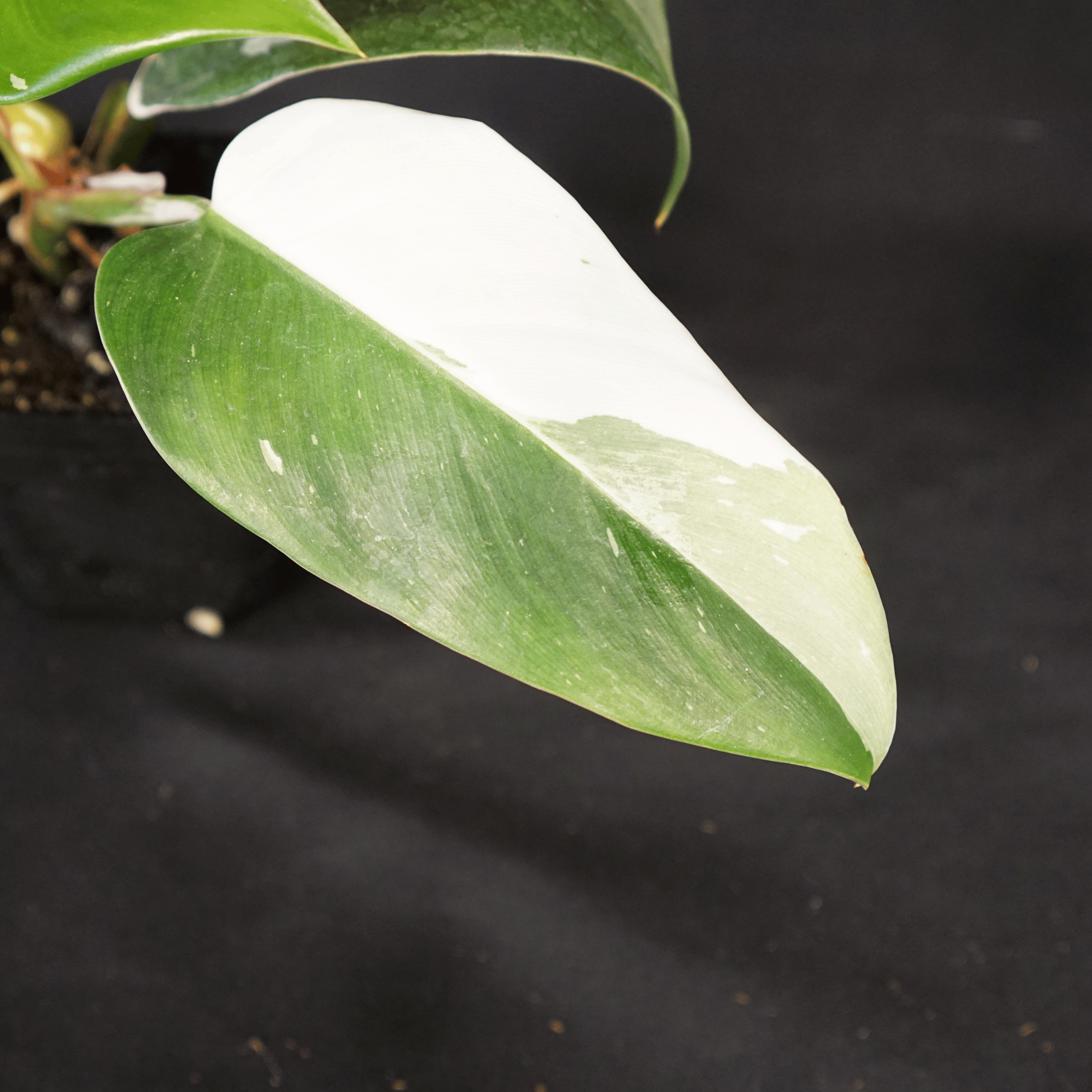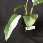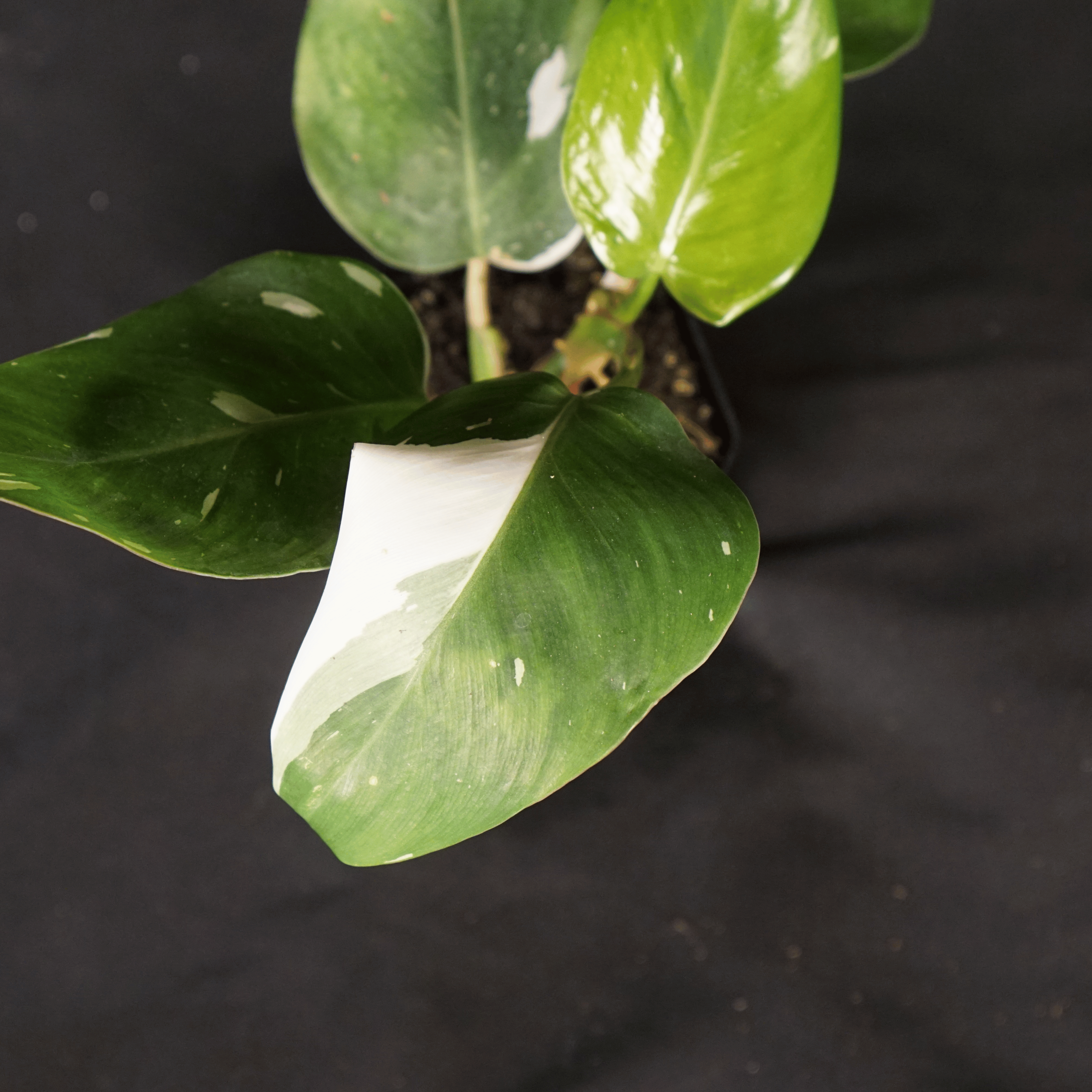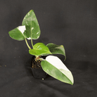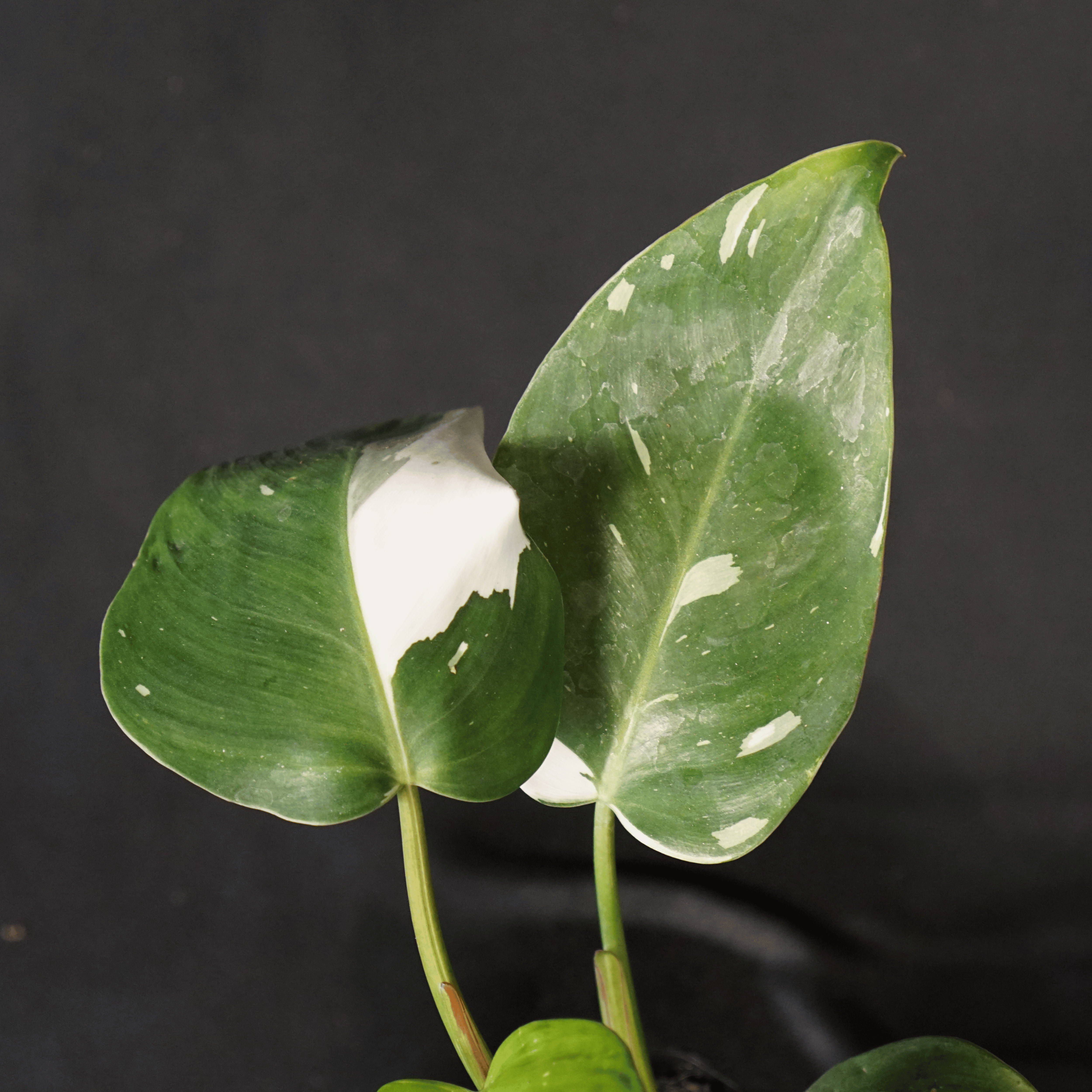 Philodendron ‘White Princess’ is a self-heading hybrid best known for its clean, upright growth habit and sharply defined white variegation across deep green, semi-gloss leaves. The foliage emerges paddle-shaped and symmetrical, often with marbled sectors, streaked petioles, or full half-moon splits depending on how the chimeric mutation expresses.