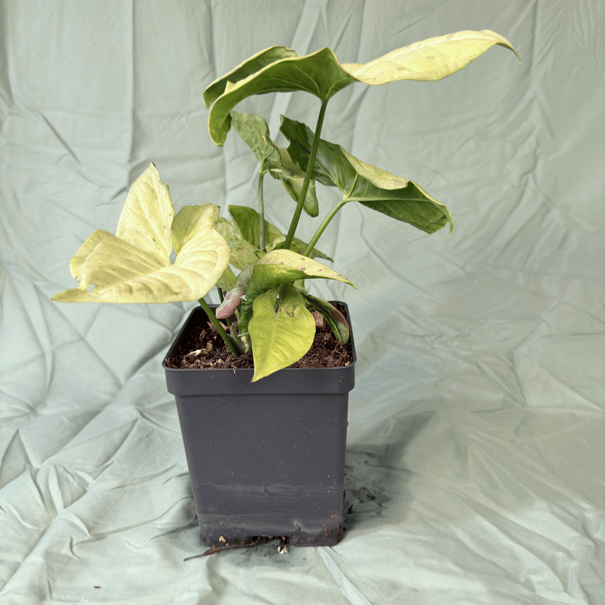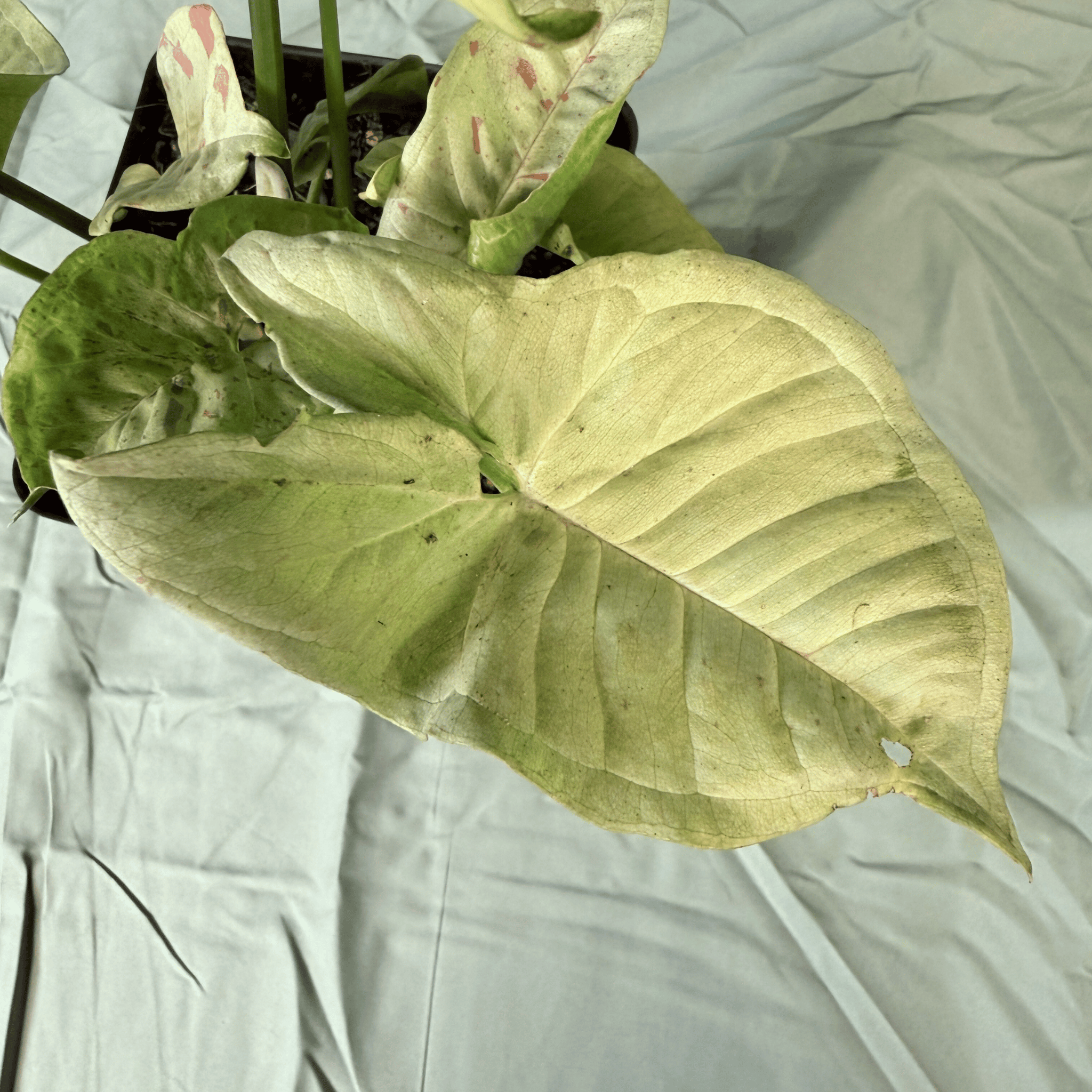 Juvenile plants stay compact with classic arrow-shaped leaves, but as with most Syngonium podophyllum, Milk Confetti Tricolor may elongate and vine with maturity. This is not a shape-driven cultivar—it’s a color-first foliage plant that performs best in bright, indirect light and stable humidity.