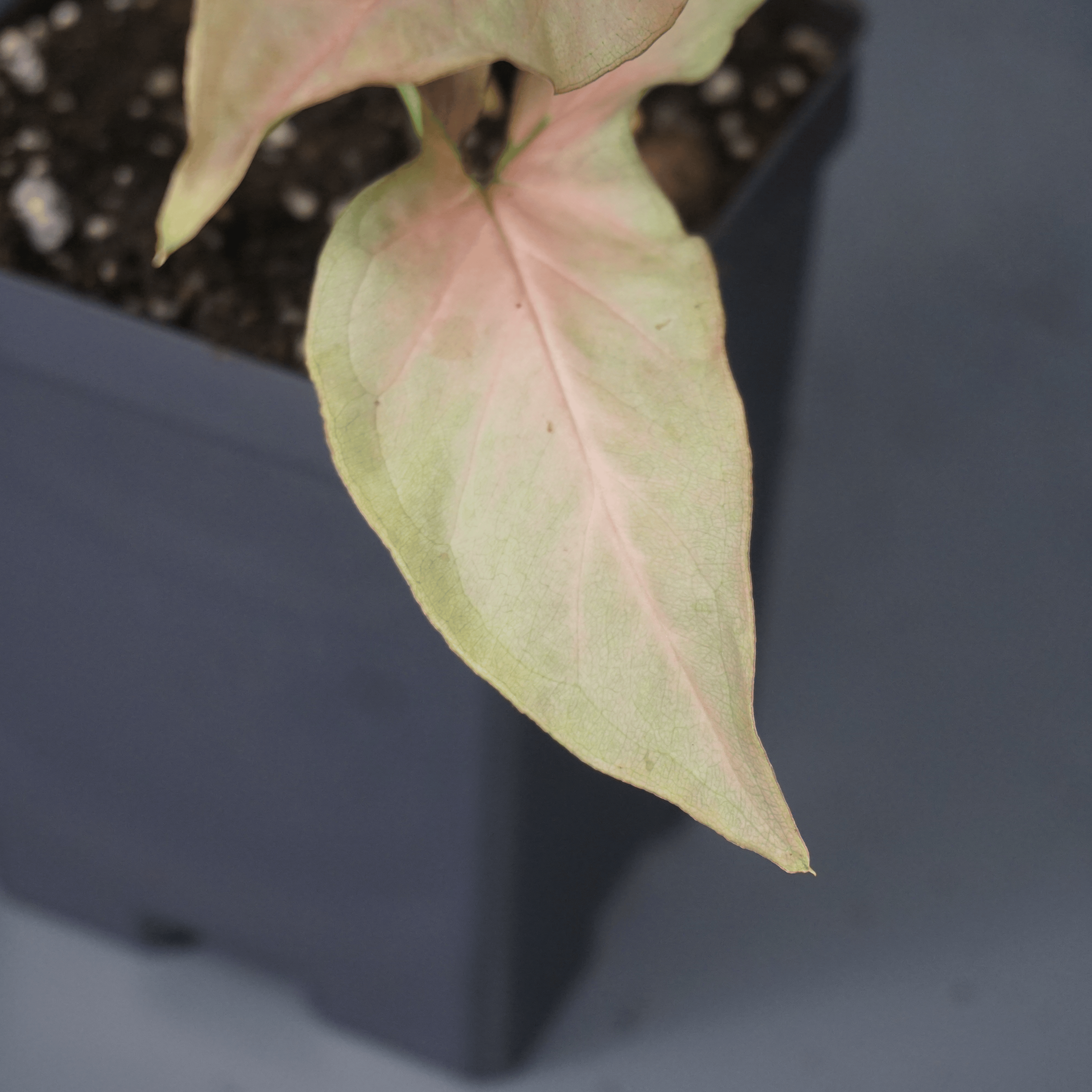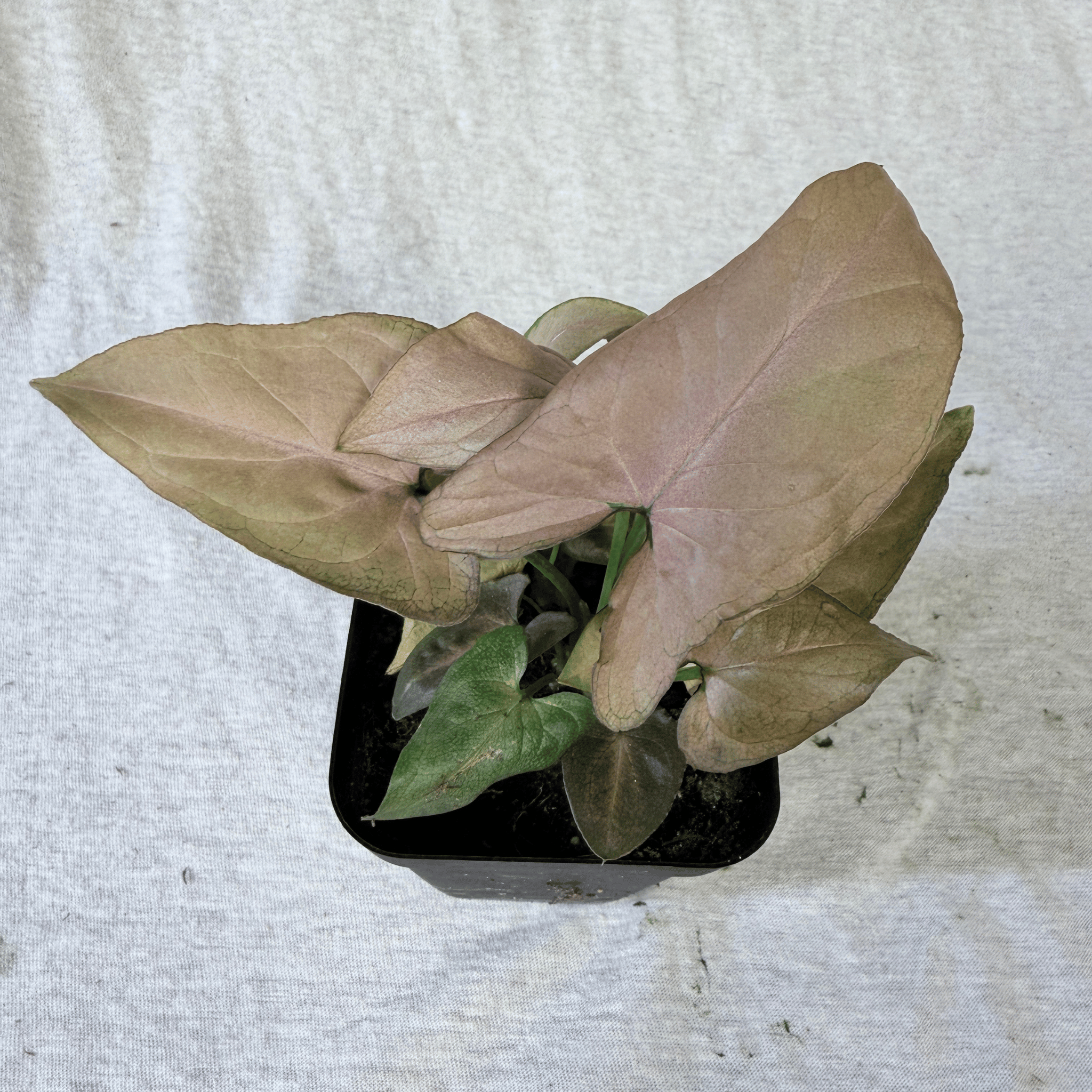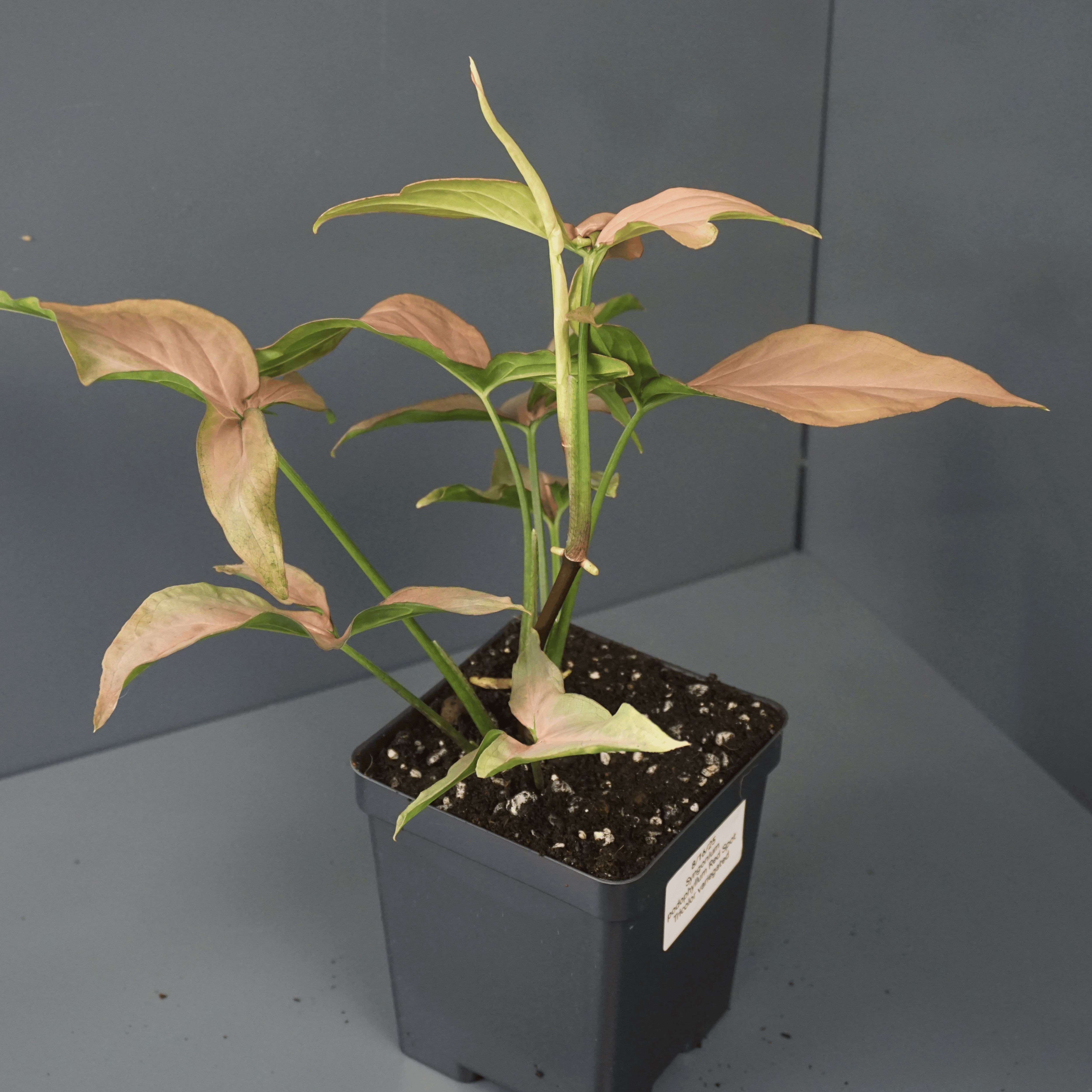 Syngonium ‘Pink Perfection’ is a pigment-forward cultivar of Syngonium podophyllum known for its soft pink to blush-toned foliage and consistent coloration. It offers a refined, uniform look rather than speckled or high-contrast variegation.