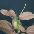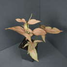 Syngonium ‘Pink Perfection’ lives up to its name with broad, heart-shaped foliage washed in soft pink to warm blush tones, occasionally layered with subtle undertones of ivory or lime. This isn’t a high-variegation speckle type — it’s a stable, pigment-forward cultivar where nearly every leaf emerges in shades of pink, thanks to a strong expression of anthocyanins and reduced chlorophyll in the developing tissue.