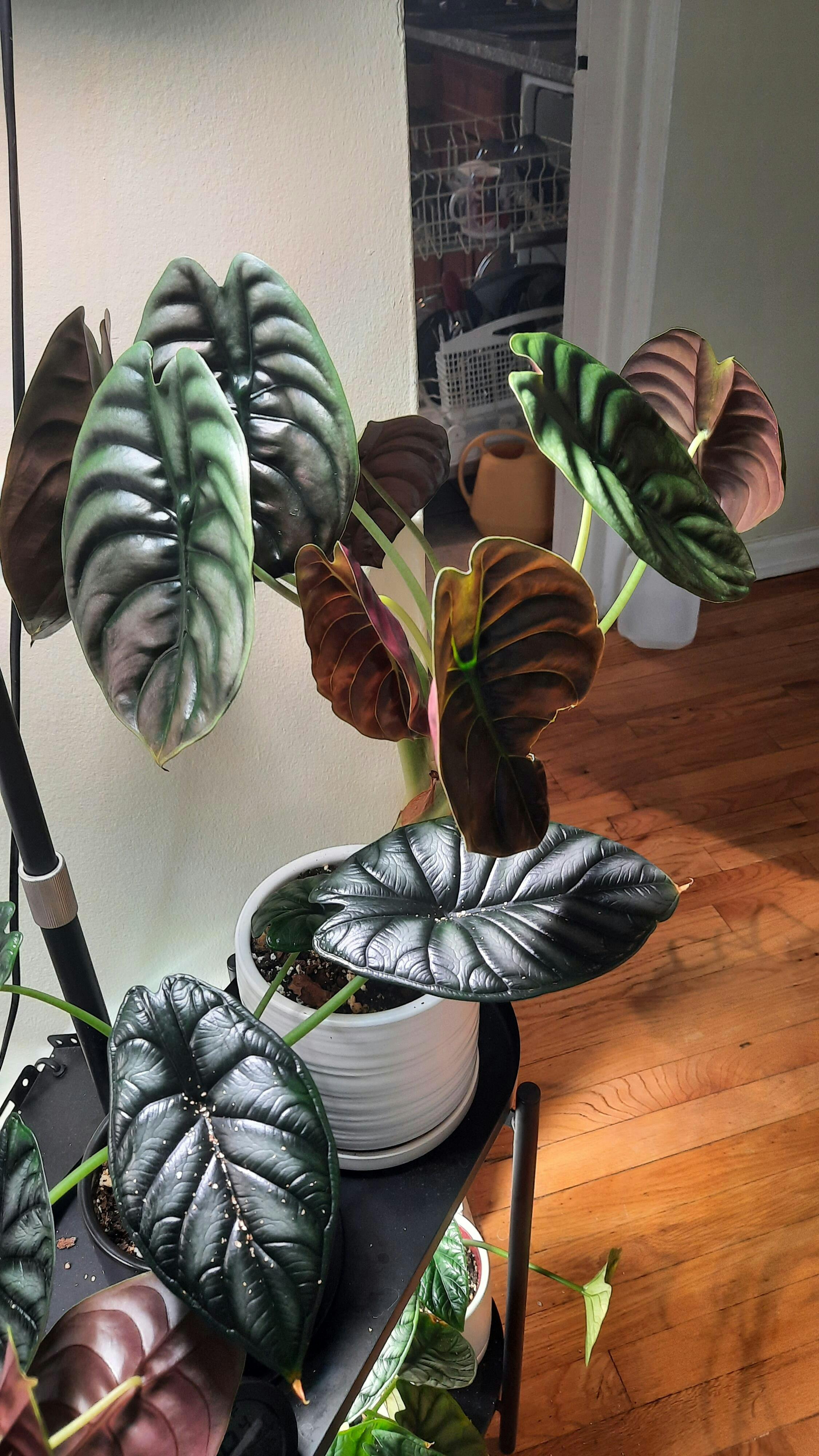 | Spider mites | Fine webbing, stippling, leaf drop | Alocasia, Calathea, Monstera |