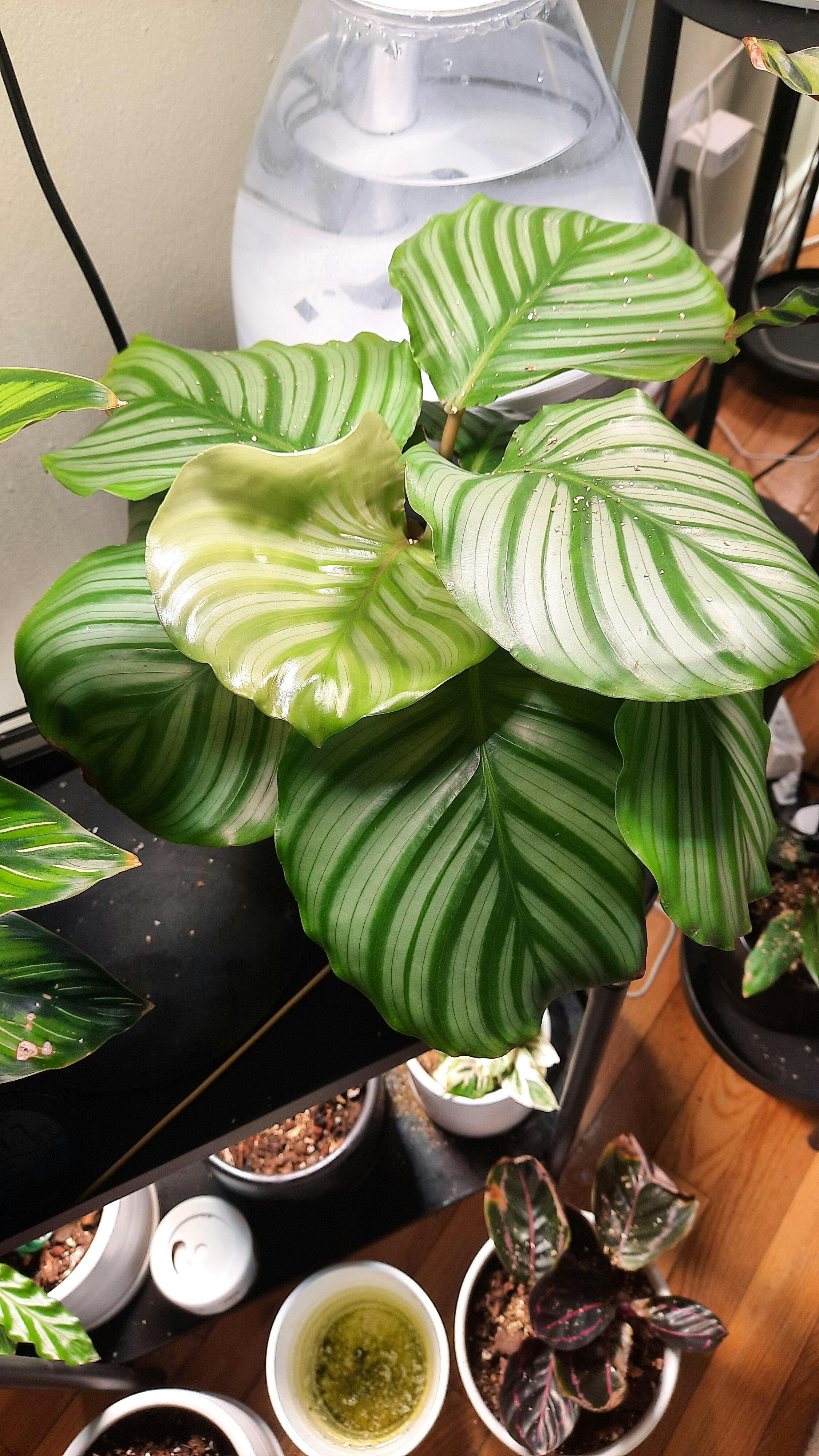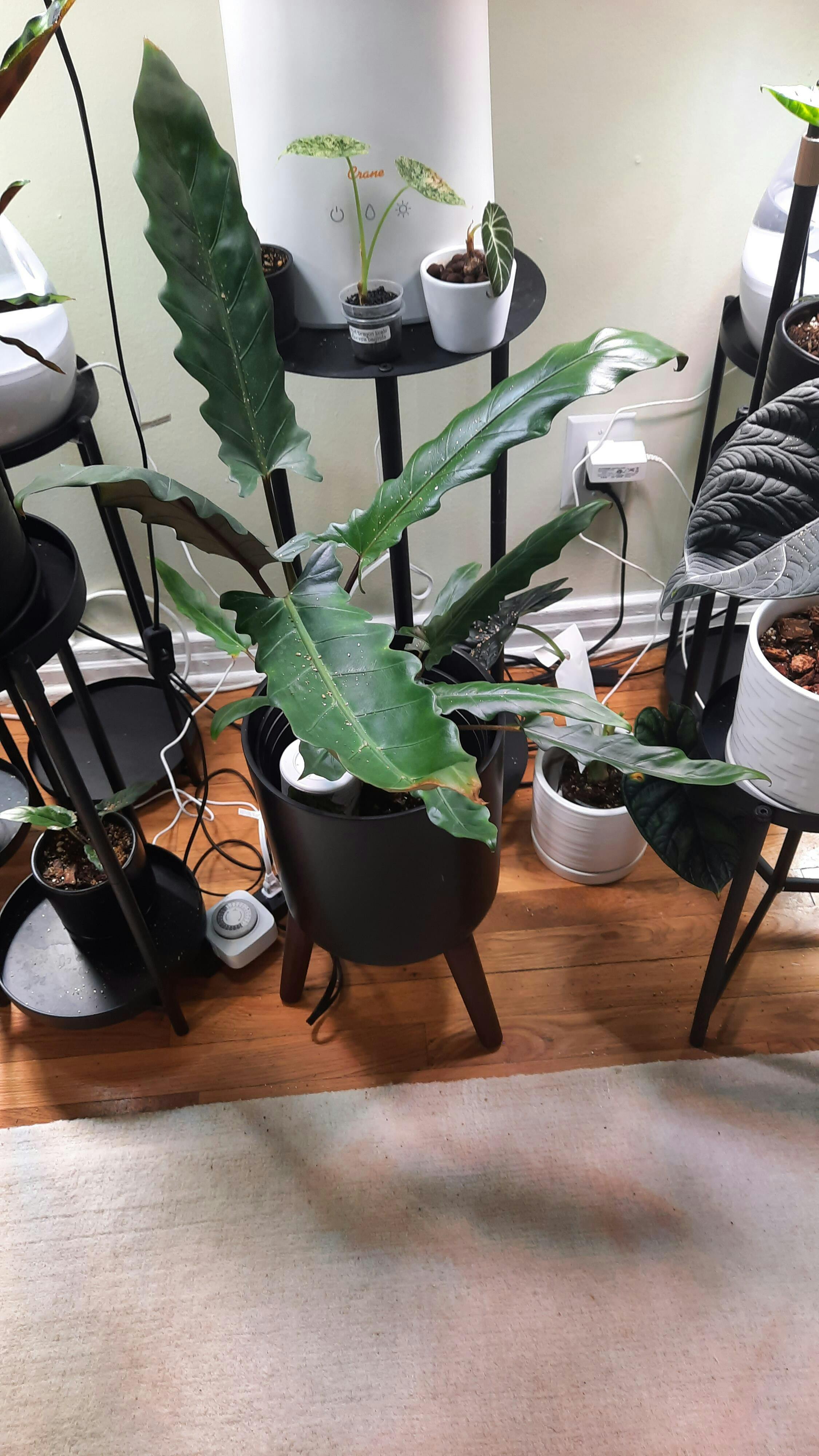 | Thrips larvae | Silver streaks, scarring | Peperomia, Philodendrons, ferns |